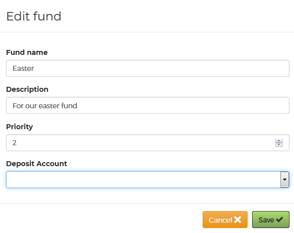 This will open up a window; see image below and will give you options on what to call the fund, a description for your reference, a priority, and what deposit account you wish the funds to go to.
